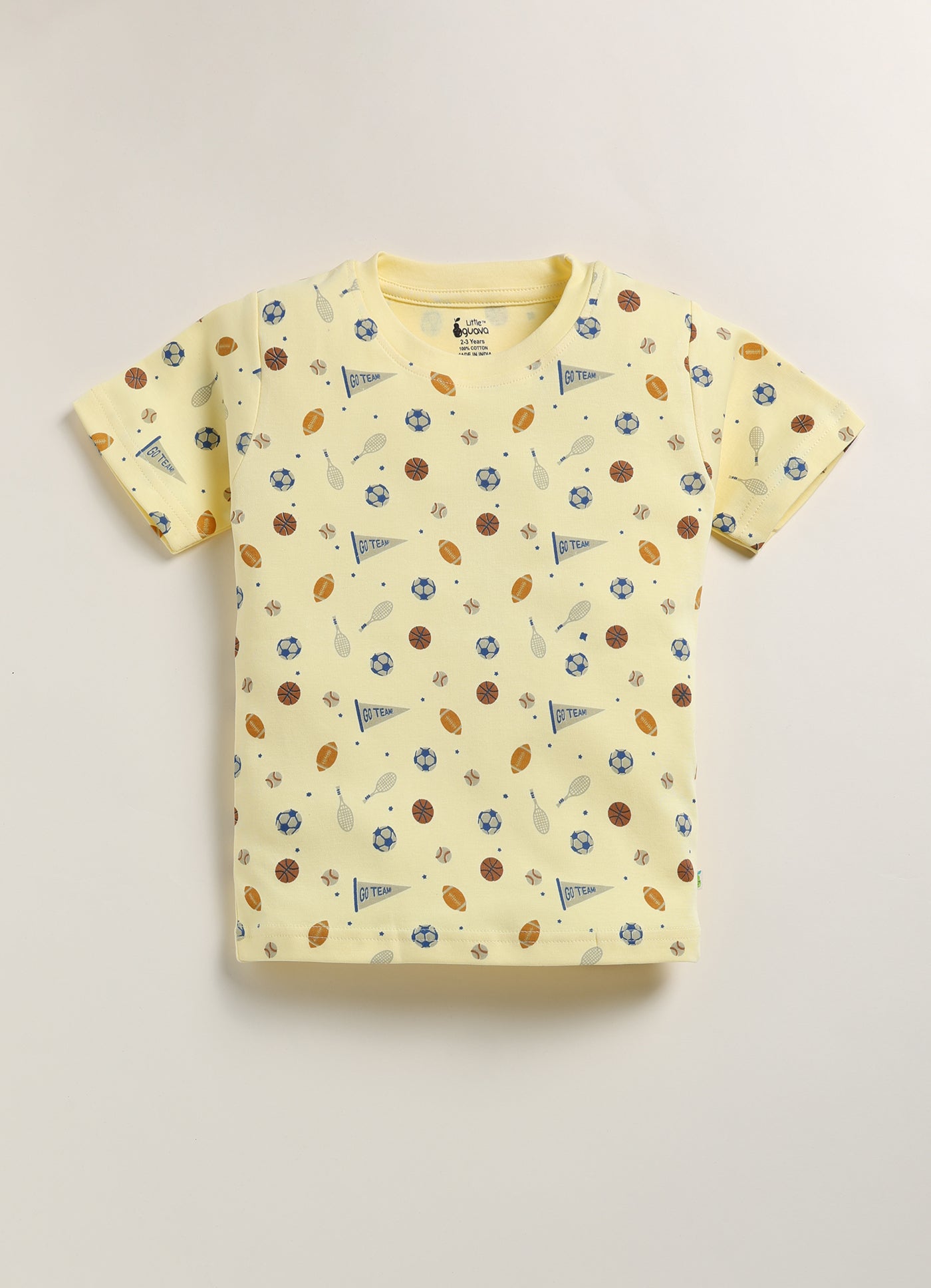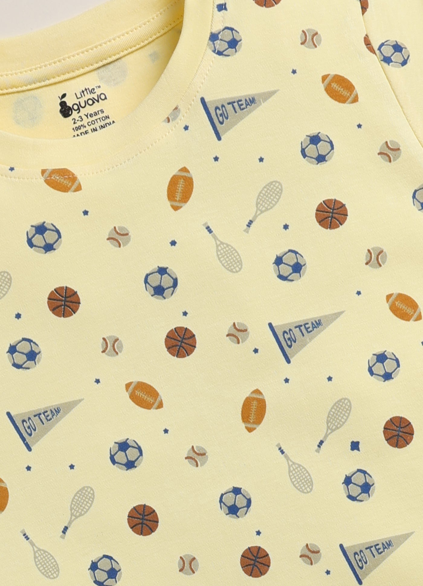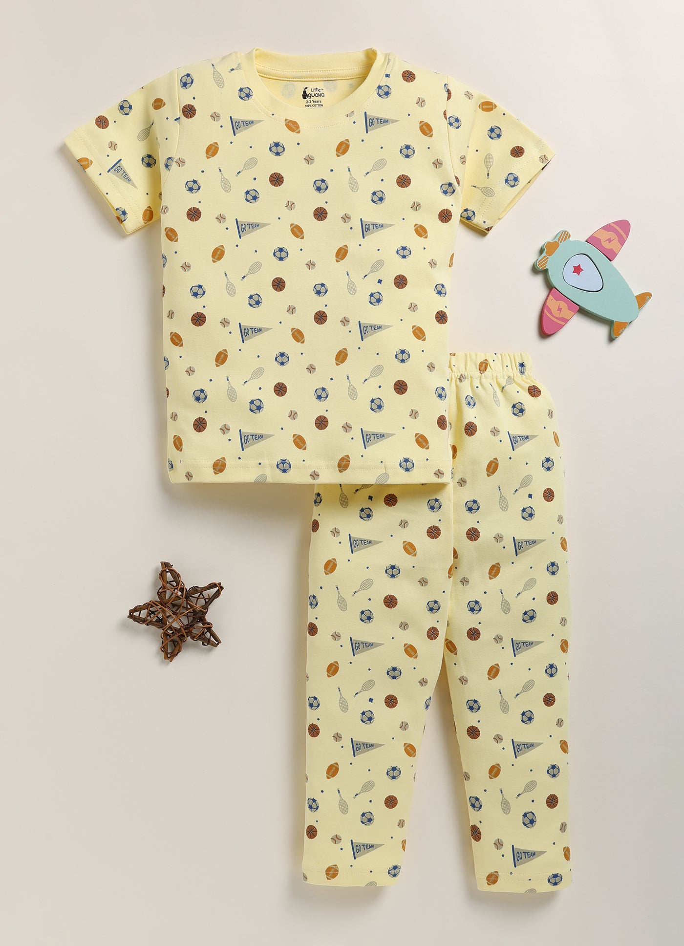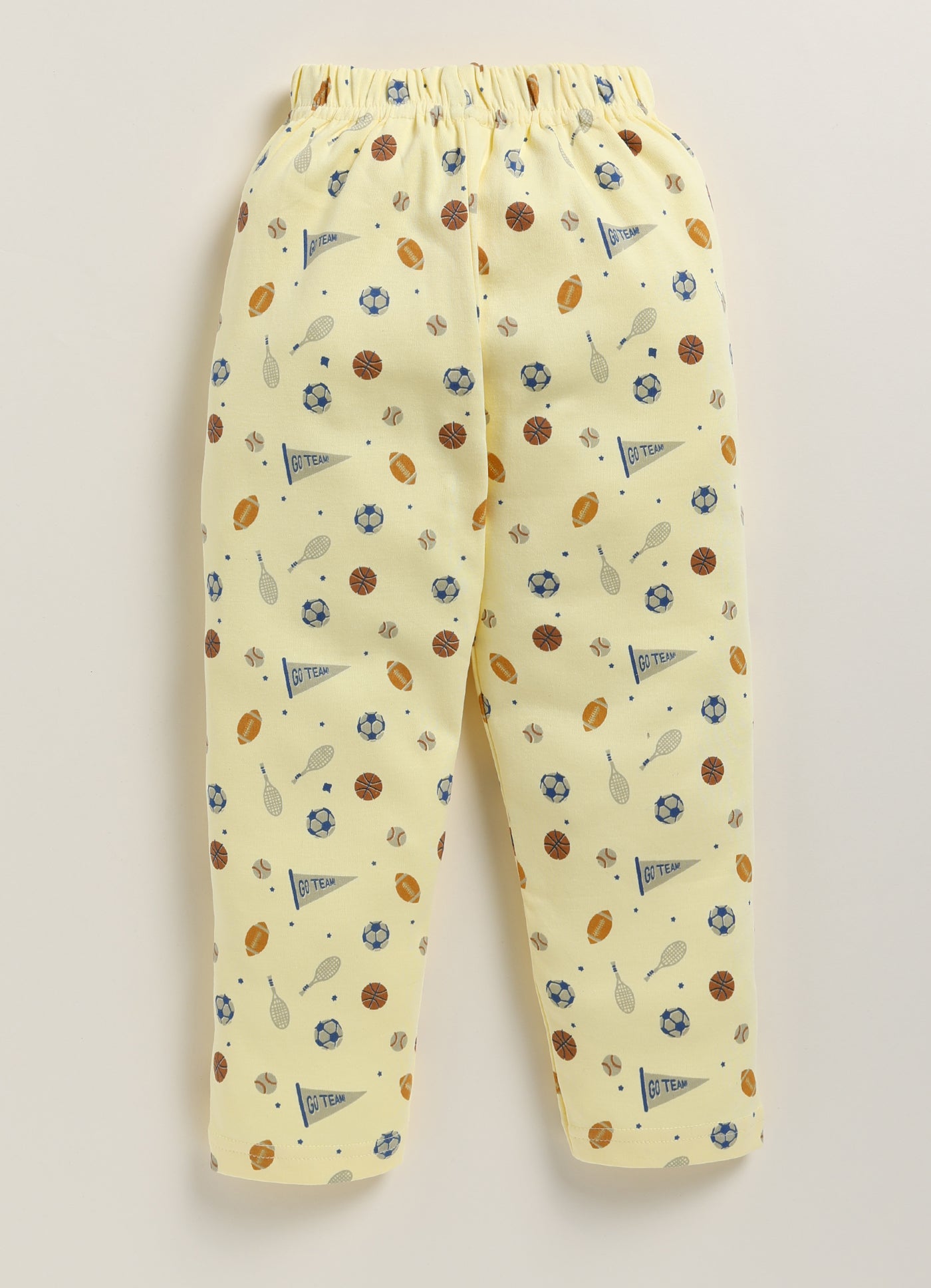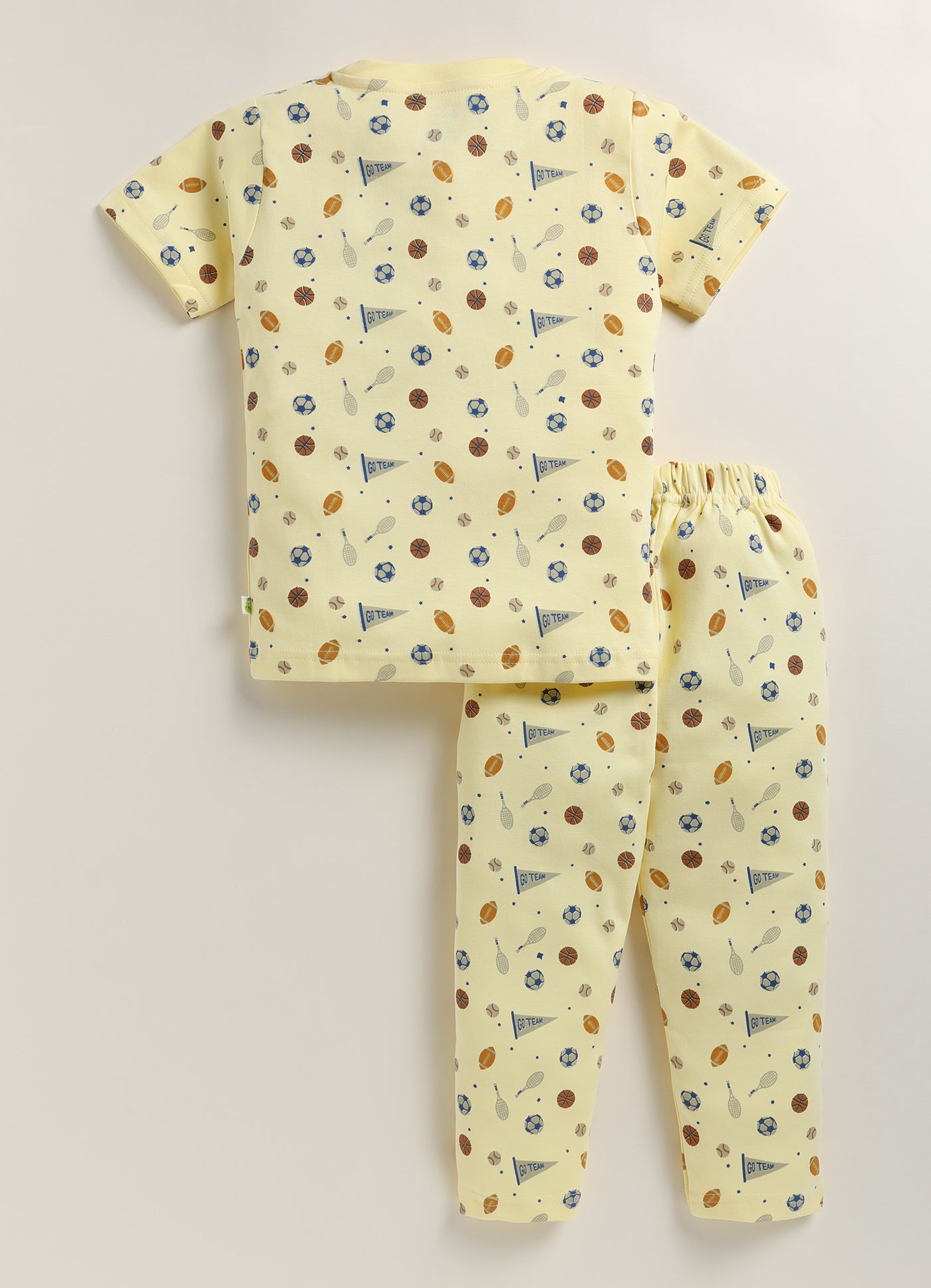 Score big on comfort with our soft interlock cotton pajama set. Featuring a dynamic sports print, these pajamas are perfect for little sports fans. The lightweight fabric is ideal for year-round wear