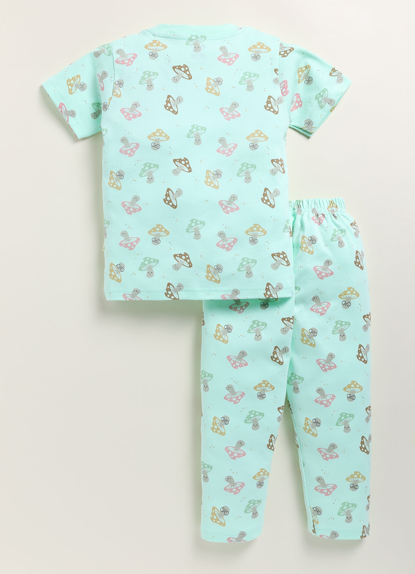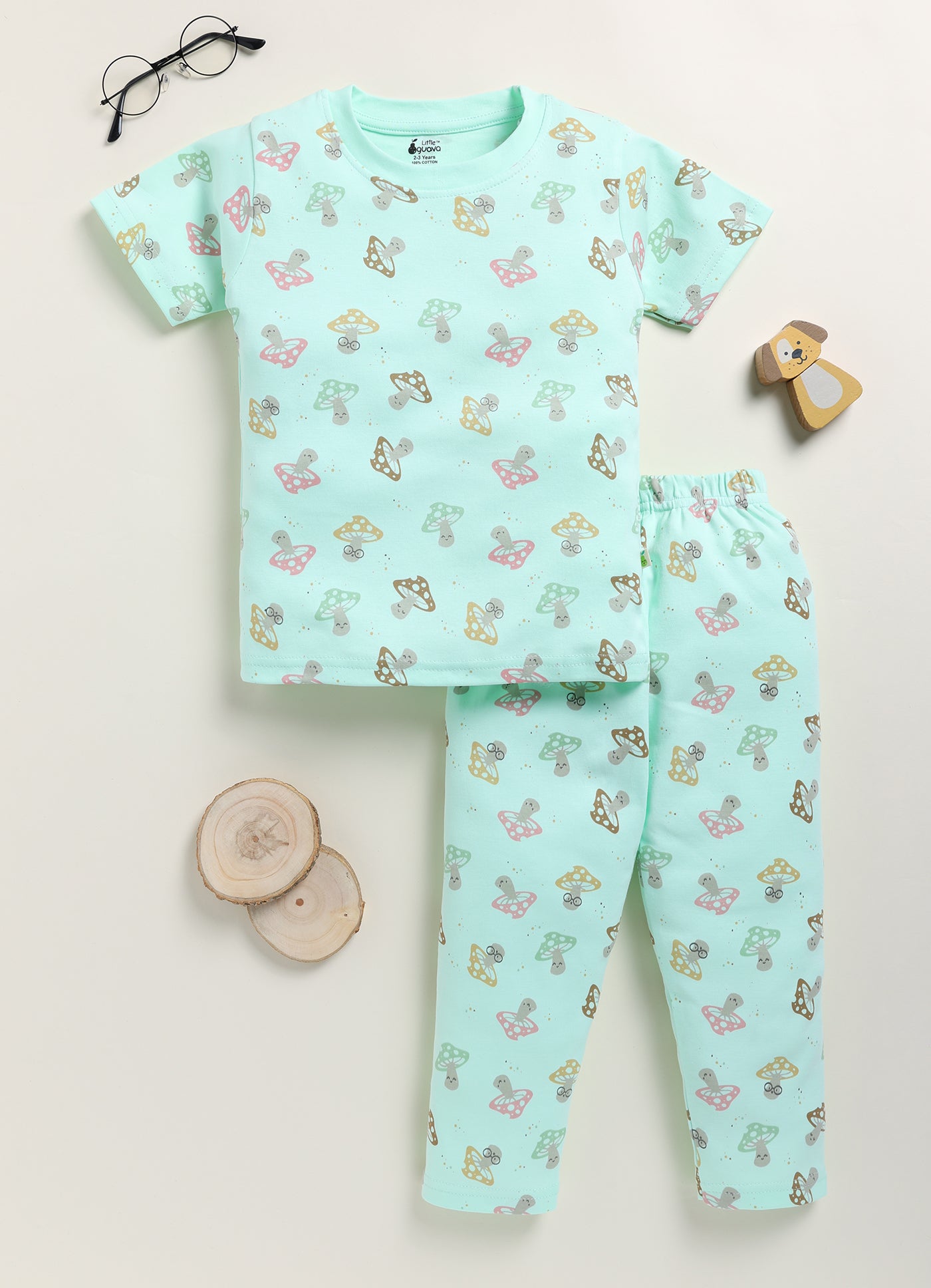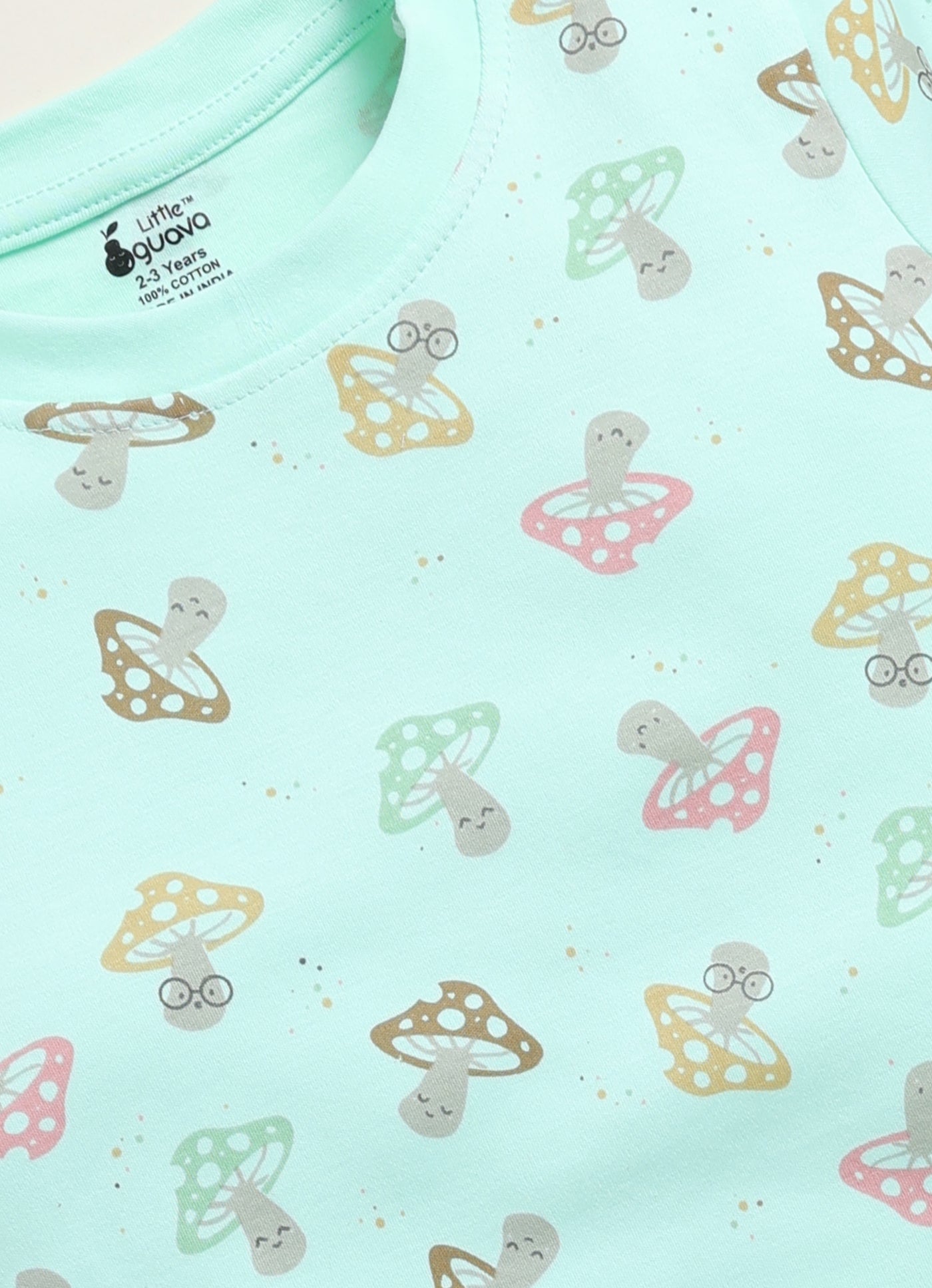 Snuggle up in comfort with our soft interlock cotton pajama set. Featuring an adorable mushroom print, these pajamas are perfect for little ones who love nature. The lightweight fabric is ideal for year-round wear